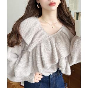 ニット セーター クロスフリルシャギーニットプルオーバー レディース