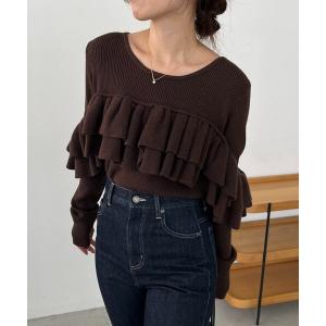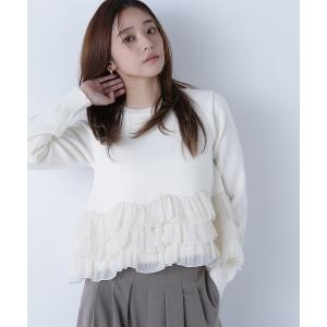 ニット セーター チュールフリル ドッキングプルオーバーニット レディース