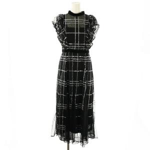 未使用品 フレイアイディー FRAY I.D 24AW シークインチェックドレス ワンピース ロング フレンチスリーブ 0 ブラック シルバー色 /DO ■OS