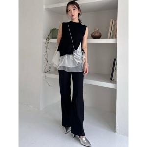 tシャツ デコルテタックフロッキーチュールトップス レディース