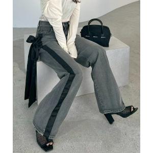 ジーンズ デニム デニムパンツ リボンモチーフストレートワイドデニム レディース