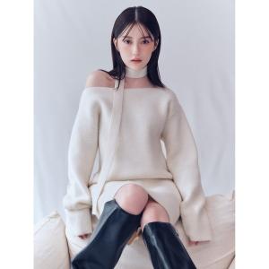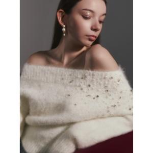 ニット セーター アルパカシャギービジューオフショルニット レディース
