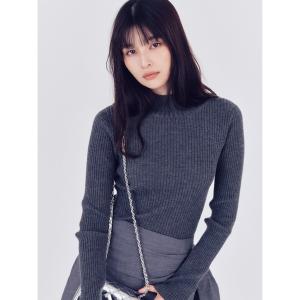 ニット セーター ウールシルクリブニットハイネックプルオーバー レディース