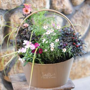 【当店オリジナル】 持ち手付き♪季節のオータムカラー寄せ植え 【現品94】