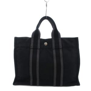 エルメス HERMES フールトゥPM トートバッグ コットン キャンバス ブラック系 /UO ■GY11 レディース