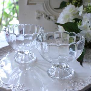 デザートグラス スカラップ 2個セット ガラスコンポート クープ ガラス食器 (1020) ガラス製 小物入れ アンティーク風 アンティーク調 シャビーシック ブロカン