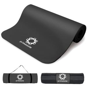 プリマソーレ(primasole) ヨガマット トレーニングマット 厚さ10mm 滑り止め横じまエンボス加工 ストラップ収納ケース付き ブラック