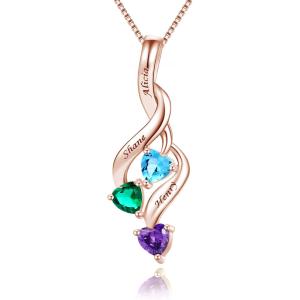 【並行輸入品】スターリングシルバー パーソナライズ マザーズネックレス 3つの模造誕生石刻印 名前 レディース カスタマイズプロミスペンダント お母さ