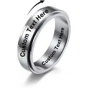 【並行輸入品】EBAT パーソナライズされたフィジェットバンドリング ステンレススチールリング カスタマイズされた名前の刻印 プロミスリング レディー