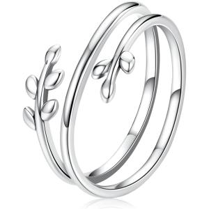 【並行輸入品】MUNDELL 925スターリングシルバー シンプル 多層リーフ 調節可能なリング グリーン ラッキーリーフ ステートメントリング レデ