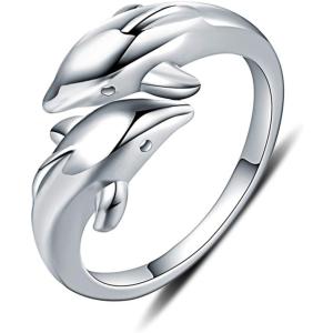 【並行輸入品】ダブルドルフィンリング 925スターリングシルバー 調節可能 オープンラップ 親指フィンガーバンド プロミスリング レディース ティーン