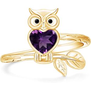 【並行輸入品】AFFY 模造誕生石 ナイトフクロウ ハート プロミスリング レディース 14Kイエローゴールドメッキ スターリングシルバー フクロウ愛