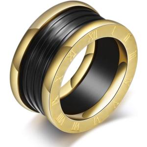 【並行輸入品】11mm ゴールド/ブラック ステンレススチール ローマ数字 クラシック 結婚指輪 プロミスリング メンズ レディース 鉄 ゴールド