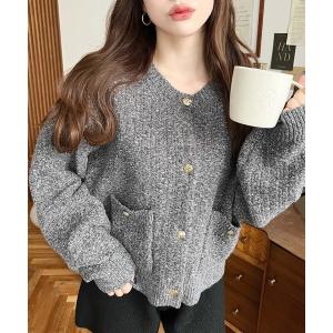 カーディガン Wポケット金ボタンツイードライクニットカーディガン レディース