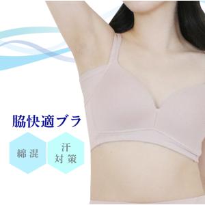 ハーフトップブラ ノンワイヤーブラジャー モールドカップ 脇快適 綿混 吸汗速乾 抗菌防臭 汗取り 汗対策 脇汗 汗ジミ 下着 夏ブラ ジャコンヌ jaconne【1841】