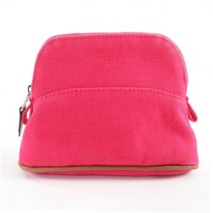 美品★HERMES エルメス ボリードポーチ ミニミニ コットン100% Hロゴ刺繍 レザー使い ミニポーチ 化粧ポーチ ピンク 仏製 レディース