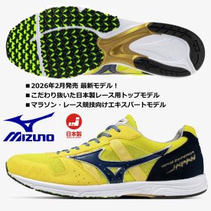 ミズノ MIZUNO/陸上 レーシング マラソンシューズ/ウエーブエンペラー JAPAN 4/U1GD192021/2026 春夏 最新カラー/イエロー×ネイビー/マラソン エキスパート