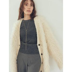 カーディガン ビジューボタンシャギーポロニットカーディガン レディース