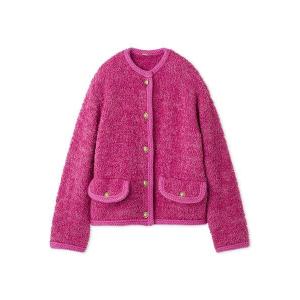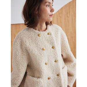 ジャケット ノーカラージャケット 金釦テディラメニットジャケット レディース