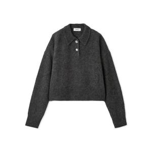 ニット セーター ポロ衿クロップド丈モヘアニットトップス レディース
