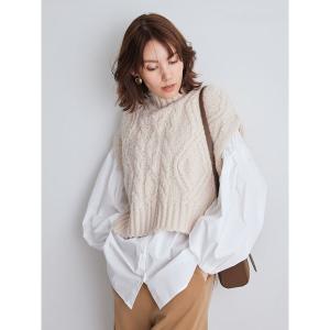 ニット セーター 「セットアイテム」シャツレイヤードケーブル短丈ニット レディース