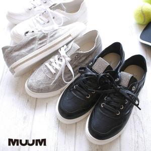 MUUM ムーム ローカット スニーカー レディース 靴 黒 白 ヘビ おしゃれ 履きやすい ゴージャス ビジュー キラキラ 3e 旅行