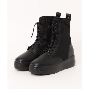 ムーム MUUM 【厚底インヒールスニーカーブーツ】MUUMニットレースアップボリュームスニーカーソールインヒールブーツ (BL)
