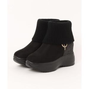 ムーム 厚底インヒールストレッチブーツ MM303 レディース ブーツ ショート ストレッチ 厚底 インヒール ウェッジソール ブラック×スエード