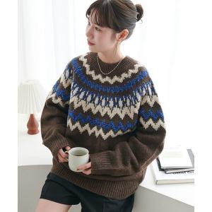 ニット セーター 「暖かおしゃれ見え/ユニセックス」求心柄オーバーニット レディース メンズ