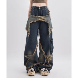 ジーンズ スターカット ダメージワイドデニムパンツ メンズ レディース