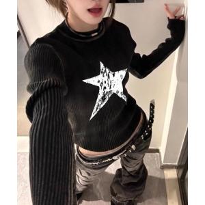 ニット セーター スターモチーフリブロンT レディース