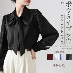 ブラウス シャツ オフィス、プライベート、オケージョンにもボウタイリボン長袖ブラウス レディース