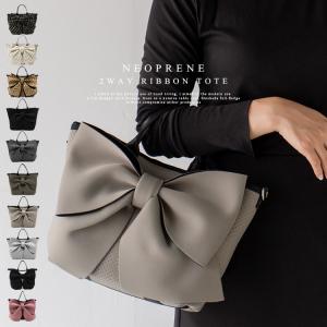トートバッグ レディース 軽量 ネオプレーン 通勤 通学 大容量 通勤バッグ 肩掛け 斜め掛け 2way リボン ネオプレン 手洗い可能 ubb-sp-0340 aroco/アロコ