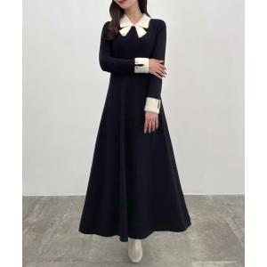 ワンピース バイカラーリボンニットワンピース「高身長サイズMT/低身長サイズS有り」