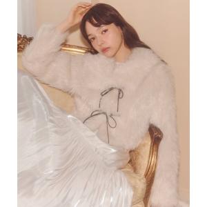 コート アウター リボンダッフルショートファーコート レディース