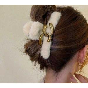 バンスクリップ ヘアアクセサリー ヘアクリップ ファー ふわふわ メタル チェーン アンティーク 大人まとめ髪 ルピス