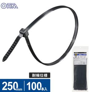 オーム電機 結束バンド ロックタイ 250mm 耐候 黒 100本入 LT-250W100BK