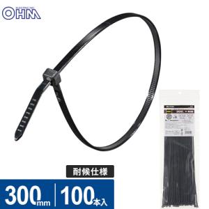 オーム電機 結束バンド ロックタイ 300mm 耐候 黒 100本入 LT-300W100BK