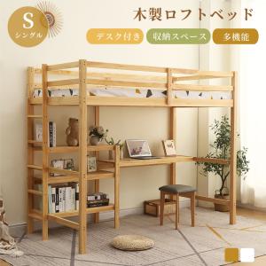 ロフトベッド ハイタイプ 机付き 収納付き 階段付き ベッド デスク 省スペース おしゃれ デスク天板 シングルサイズ 2口コンセント 収納棚