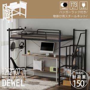 ロフトベッド 階段付 シングル ベッド 子供ベッド 宮棚 幅262 左右入替 新倉庫入荷セール DEWEL 階段収納 物掛け用スチールネット ハンガーラック 夜光シール