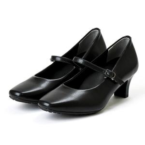 Lady worker(レディワーカー) ストラップ付きスクエアトゥパンプス(ブラック・サイズ:21.5cm) 返品種別A