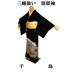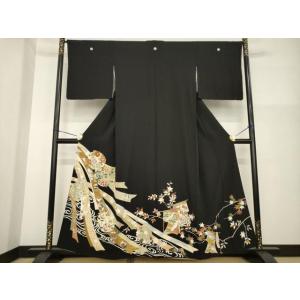 黒留袖 中古 着物 送料無料 最高級 新品同様 友禅 作家物 風景 花柄 鳥 比翼付 ふき仕立て 三越扱い 身丈155cm 裄丈64cm 正絹 結婚式