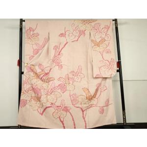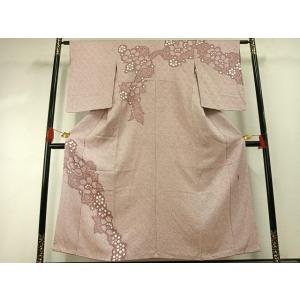 三越扱 秋草の模様 型友禅に手刺繍附下 変り絽着物【中古】