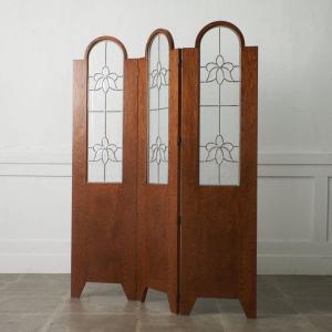 定価25万 三越家具 ブルージュ 3連 パーティション Brugge ステンドグラス 英国 カントリー スタイル 衝立 間仕切り 折りたたみ 93777
