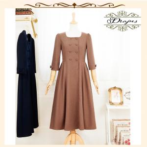 ワンピース ウール25% リボン フレア ドレス お出かけ 二次会 ミモレ丈 30代40代 50代 春