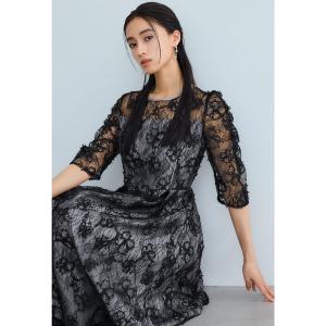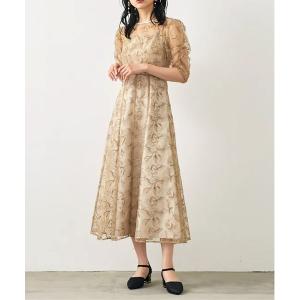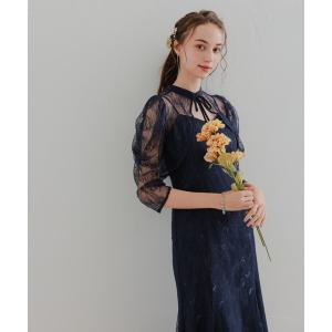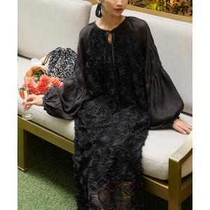 ドレス 「forksy.」「オケージョン対応」フラワーモチーフシアーバルーンスリーブワンピース