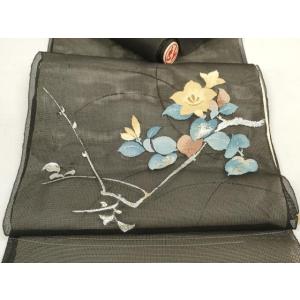平和屋着物*夏物 名古屋帯 帯反物 桔梗 黒地 金銀糸 伊勢丹扱い 逸品 未使用 DABC1152zzz