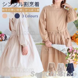 割烹着 おしゃれ 撥水 スモック ワンピース 秋 春 ロング丈 ルームウェア 長袖 無地 レディース かわいい かぶり 軽い ナイロン100% 撥水加工 x9-whk007