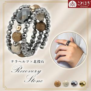 北投石 × テラヘルツ ミラーカット K18 形状記憶リング 日本製 自社製 高純度 テラヘルツ鉱石 血流改善 肩こり 冷え性 健康ストーン 国内品質検査済