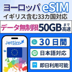 【ヨーロッパ eSIM】30日間 50GB 高速データ通信 4G/5G対応 即日発行可 フランス・イタリア・イギリス対応 テザリング可 簡単設定
